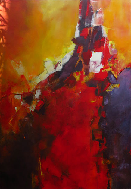 Un tableau abstrait ? Peut-être pas ! Si l’on suit l’intuition du pinceau tenu par Rosée M., on peut se retrouver à cheminer dans les ruelles typiques des villages du Luberon. Chacun verra ce qu’il souhaite, mais tous emprunteront les ruelles escarpées de la pensée en se perdant dans ces dédales d’acrylique.